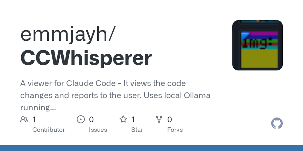 CCWhisperer is an AI-powered tool that automatically generates human-readable explanations of code changes made during Claude Code sessions. It intercepts file edits (Write, Edit, MultiEdit) and uses local Ollama models to provide explanations in different tones (ELI5, Standard, Developer-focused). The tool features a modern web dashboard for viewing explanations with filtering and regeneration capabilities, ensuring all processing happens locally without data leaving your machine.