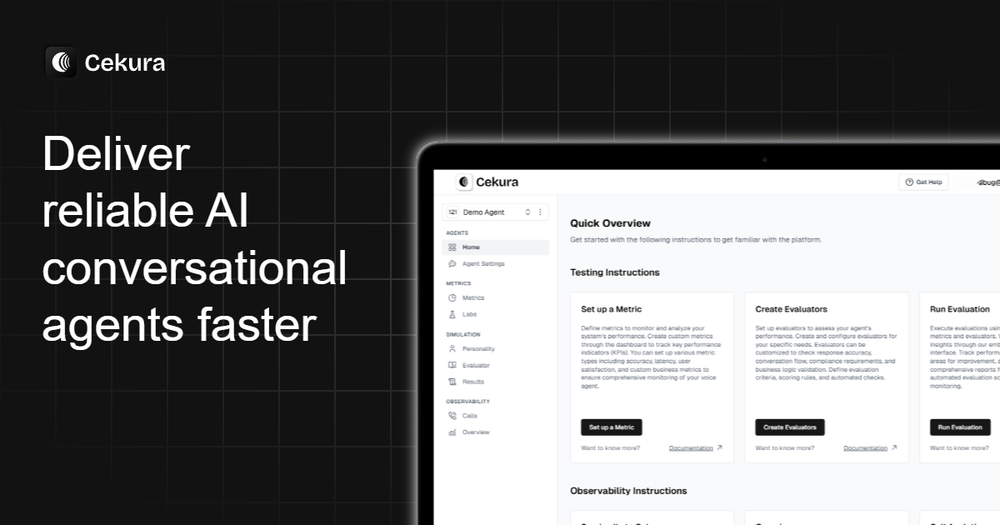 Cekura is an automated quality assurance platform specifically designed for Voice AI and Chat AI agents. It provides comprehensive testing and monitoring capabilities to ensure conversational AI systems deliver reliable, high-quality interactions.