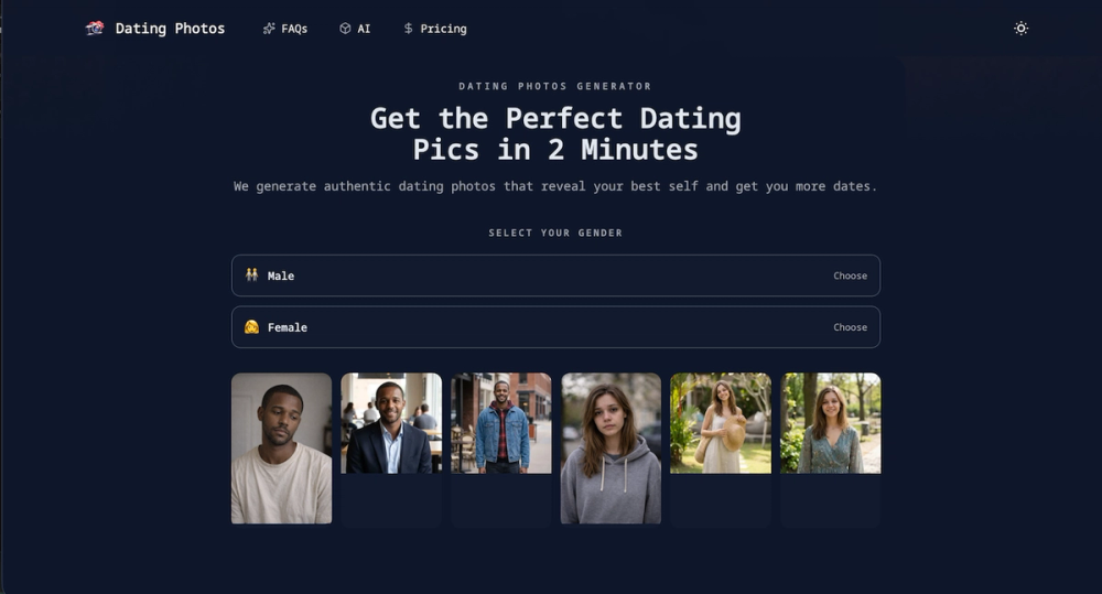 Dating Photos uses AI to improve your dating app images while keeping you looking like yourself. Upload one photo and