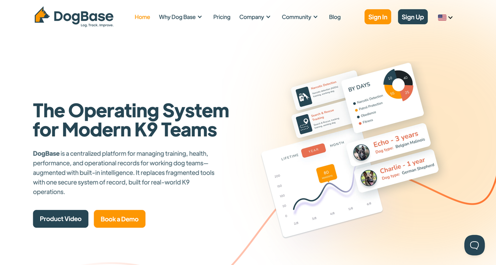 DogBase is a comprehensive cloud-based platform designed specifically for working dog teams, trainers, and handlers across various disciplines including search and rescue, military, law enforcement, and professional dog sports. It serves as a centralized system of record that replaces fragmented tools with an integrated solution built for real-world K9 operations.