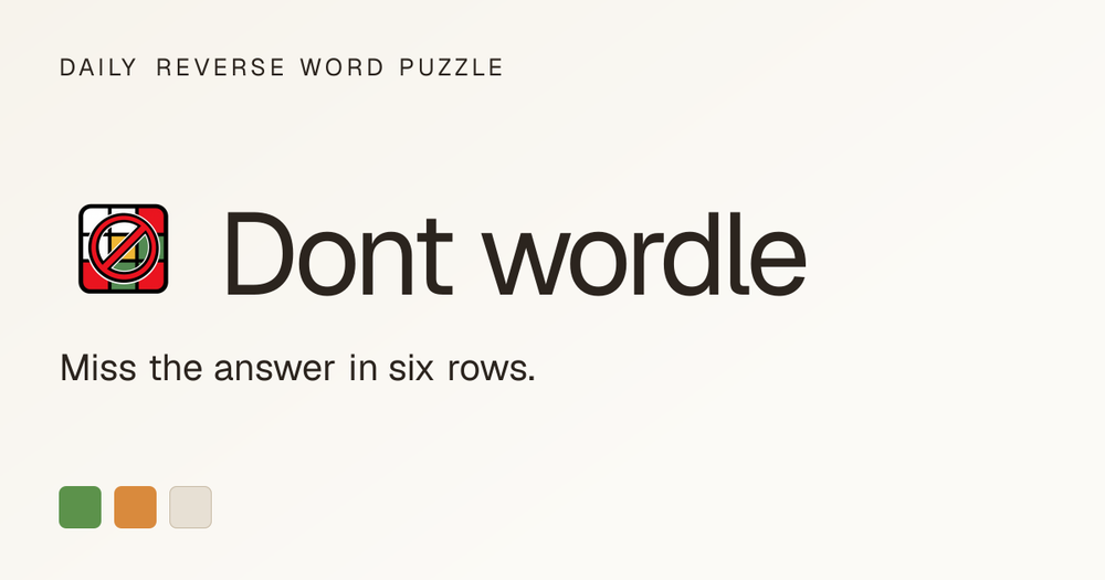 Dont wordle is a browser-based reverse Wordle game that flips the traditional puzzle objective. Instead of racing to find the hidden five-letter word, players must strategically avoid typing it for six consecutive rows while adhering to standard Wordle clue logic (exact, present, and absent letters). The game features a daily fresh puzzle, on-screen keyboard, undo functionality, and comprehensive strategy guides.