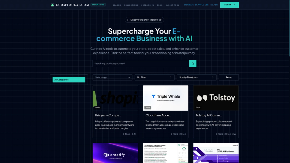 ecomtoolai.com is a comprehensive, curated directory specifically designed for e-commerce professionals seeking AI-powered solutions to optimize their online businesses. The platform serves as a centralized hub for discovering, evaluating, and implementing AI tools across various e-commerce functions.