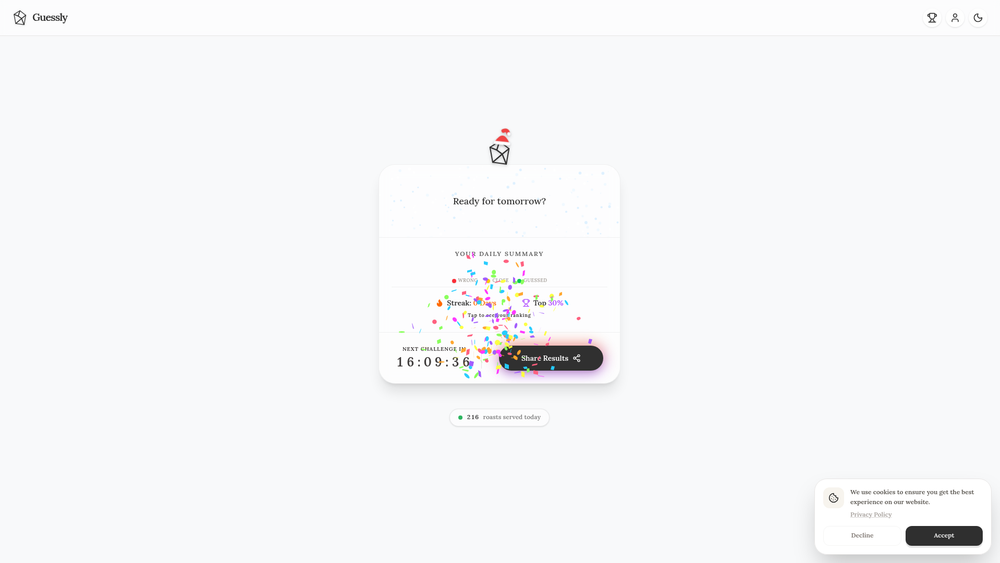 Guessly is a web-based daily puzzle game designed to challenge users' cognitive abilities through visual riddles. Each day presents a new visual puzzle where players must interpret poetic clues to guess what hidden image is being described. The game combines elements of wordplay, visual recognition, and lateral thinking to create an engaging brain-training experience.