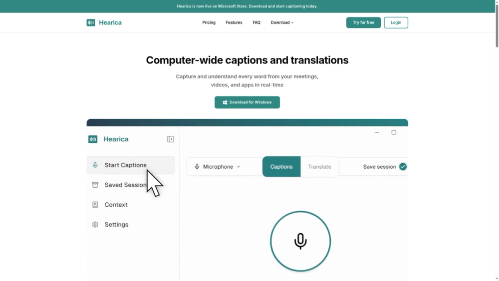 Hearica is a Windows desktop application that provides real-time captioning and translation across your entire computer system. It captures audio from any source—including system output, microphone, or uploaded files—and displays customizable, always-on-top captions. Key features include: