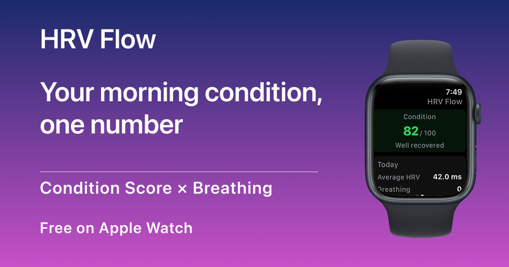 HRV Flow is a health and wellness application designed exclusively for Apple Watch users. The app transforms raw biometric data into actionable insights by calculating a daily condition score (0-100) based on three key metrics: wake-up Heart Rate Variability (HRV), resting heart rate, and sleep duration.