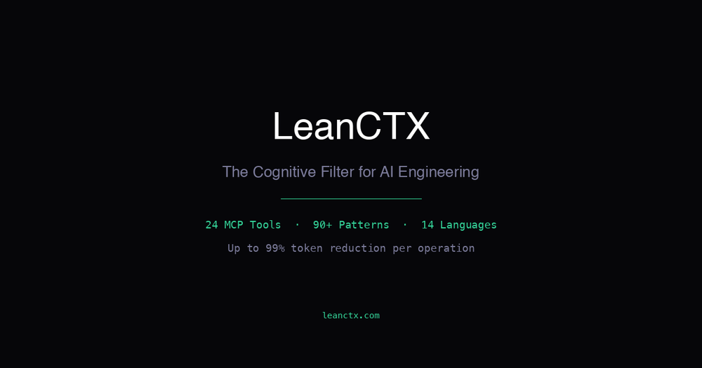 LeanCTX is a context engineering layer for AI coding tools that dramatically reduces token consumption by intelligently compressing data sent to LLMs. It operates as an open-source MCP server and shell hook with three independent compression layers: