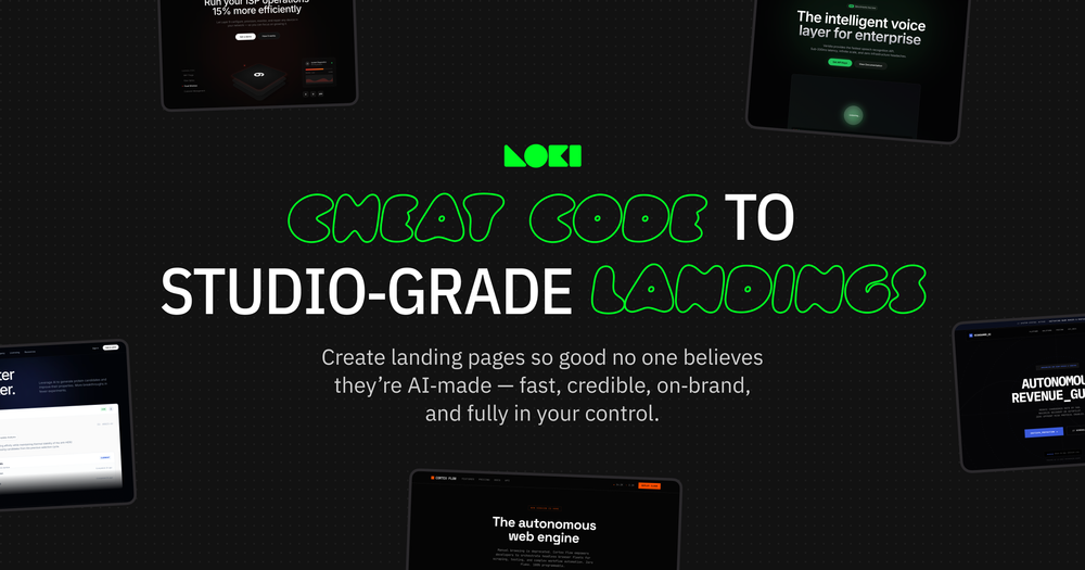 Loki.Build is an AI-native design editor that enables users to generate studio-grade landing pages in seconds. It combines AI generation with manual editing capabilities, allowing users to create on-brand, credible landing pages without coding. Key features include: