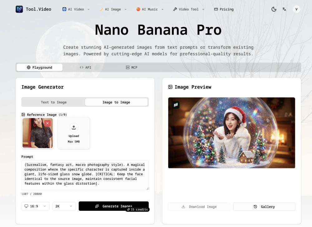 Nano Banana Pro is an advanced AI image generation tool that enables users to create high-quality visual content through intuitive text prompts or by transforming existing images. This web-based platform offers both text-to-image and image-to-image functionality, allowing for creative transformations with detailed control over artistic styles and technical parameters.