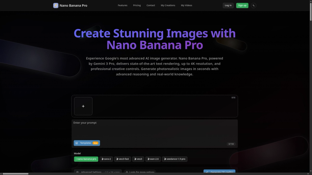 Nano Banana Pro is a state-of-the-art AI image generation platform developed by Google, leveraging the powerful Gemini 3 Pro model. This platform enables users to create stunning 4K resolution images with advanced text rendering, professional creative controls, and lightning-fast generation times of 10-30 seconds. It's designed for creators, professionals, and enterprises seeking high-quality visual content.