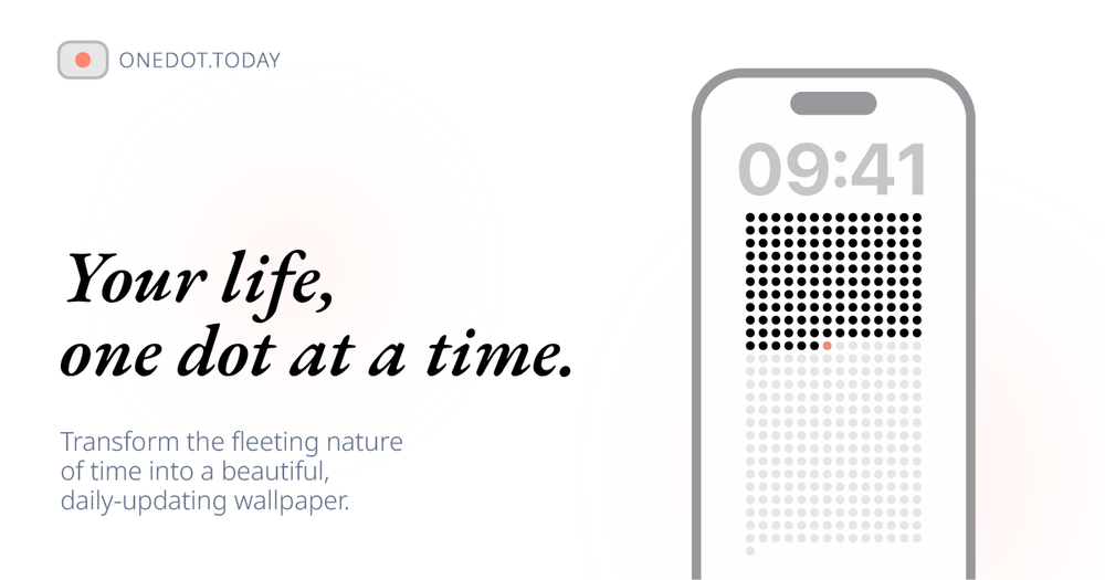 Transform time into visual art with one dot, a specialized wallpaper generator that creates custom high-resolution wallpapers for both memento mori reflection and productivity tracking. Each day is represented by a single dot, building a beautiful visual timeline on your device's background.