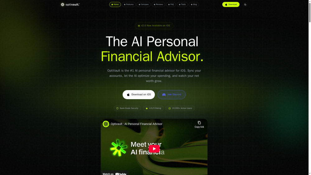OptiVault is an AI-powered personal financial advisor application designed to help users automate their finances, track net worth, and receive intelligent financial guidance. The platform connects with over 12,000 banks via Plaid to provide real-time analysis of spending habits, identify wasteful subscriptions, and offer personalized recommendations for wealth growth.