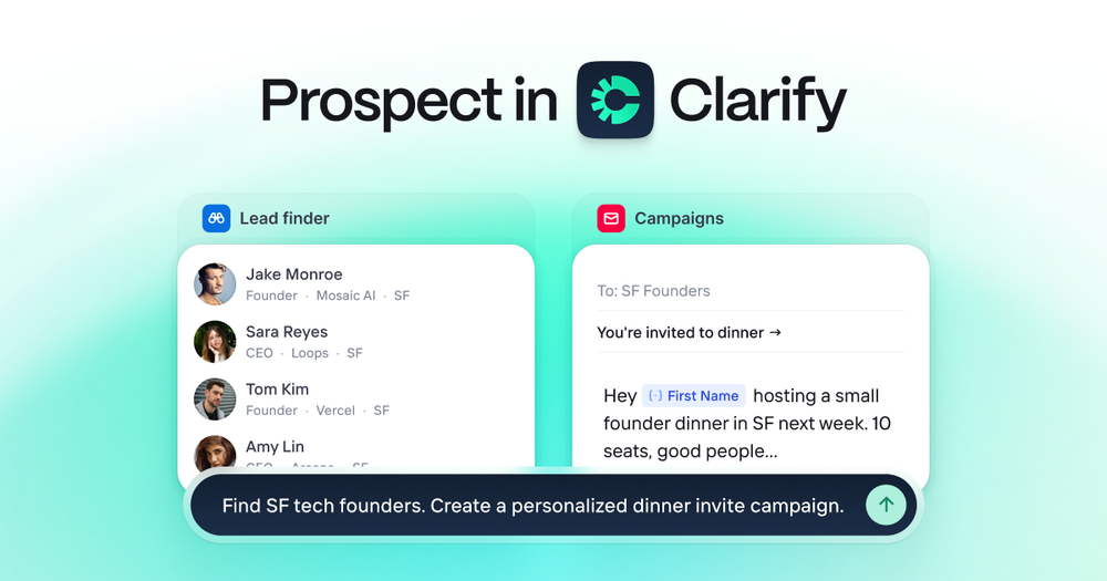 Clarify is an AI-driven sales prospecting platform designed to streamline outbound sales processes. The platform combines lead generation, personalized outreach automation, and CRM integration into a unified workflow.