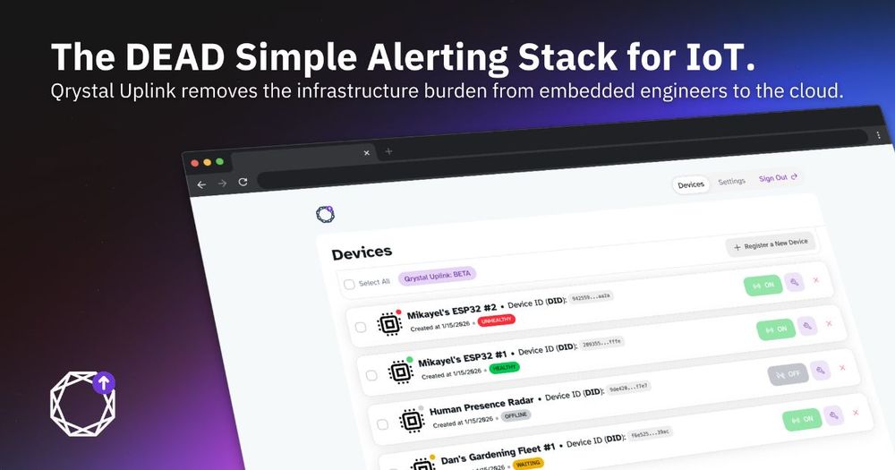 Qrystal Uplink is a fully managed cloud monitoring solution designed specifically for IoT device fleets. It eliminates the need for businesses to build and maintain their own monitoring infrastructure by providing a simple, reliable platform for device health tracking.