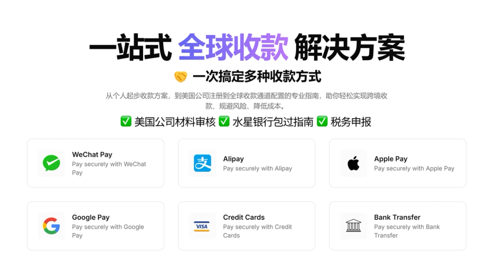 - 完整流程指导:涵盖从个人收款到公司注册再到全球收款通道配置的全流程