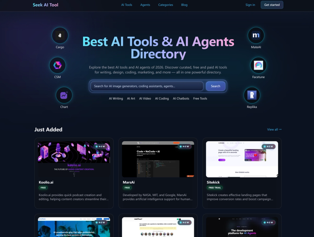 SeekAITool is a comprehensive AI tool discovery platform that helps users find, evaluate, and compare the best AI solutions for their specific needs. The platform features a meticulously curated directory of over 1,000 AI tools and agents across various categories, with detailed information on pricing, features, and real-user reviews.