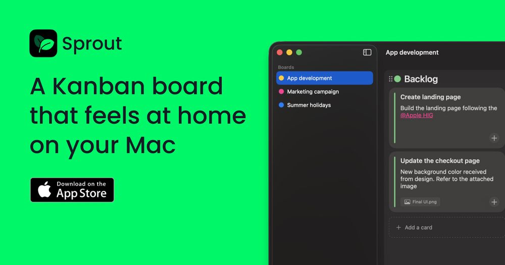 Sprout is a Kanban board application designed specifically for macOS, offering a clean, native experience without the complexity of accounts or sync issues. It focuses on privacy with CoreData and iCloud integration, ensuring your data stays secure and exportable. Key features include: