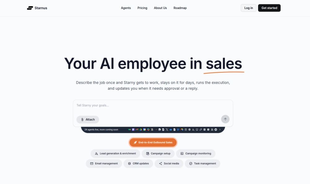 Starnus is an AI-powered business automation platform designed to function as a virtual employee for sales and operations. The platform enables users to run their business through simple prompts, automating complex tasks across multiple business functions.