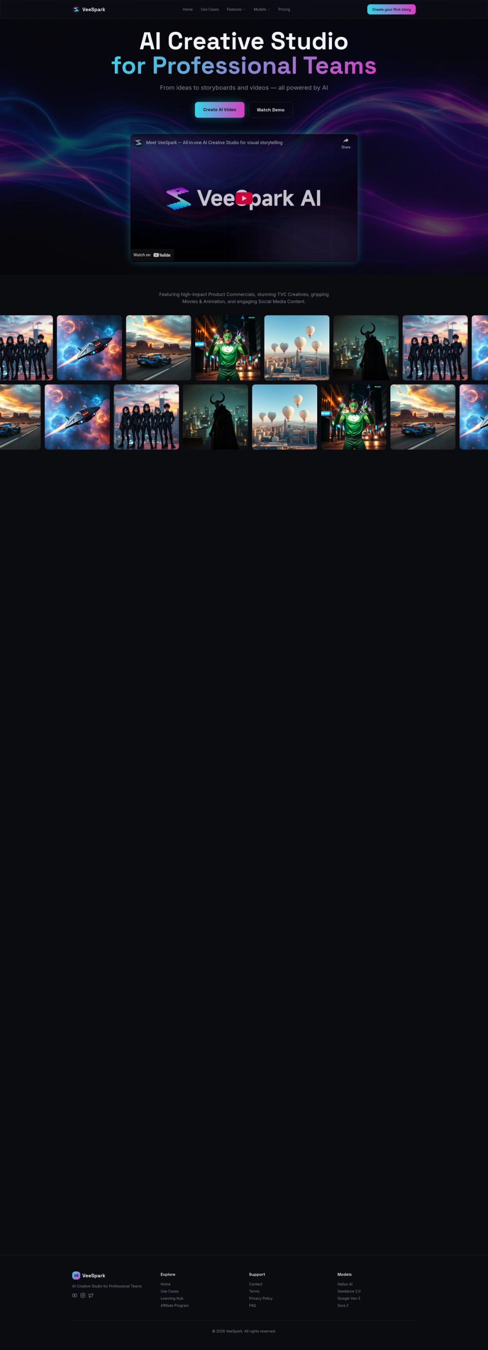 VeeSpark is an all-in-one AI creative studio that empowers users to transform ideas into stunning videos and animations. It generates scripts, scenes, and branded visuals in seconds, making it ideal for social media content, advertisements, and educational materials. No design skills are required, as the platform leverages advanced AI to handle the creative process from concept to final output.