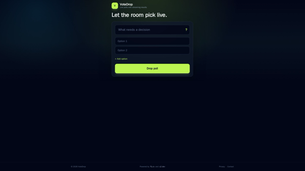 VoteDrop is a live poll maker that allows you to create polls instantly and share them with a clean link. Votes update in real time, making it perfect for settling debates, gathering feedback, or engaging an audience during presentations or events. Key features include: