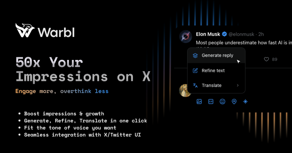 Warbl is an AI-powered Chrome extension designed to revolutionize engagement on X (formerly Twitter). It helps users overcome creative blocks by generating contextual, personalized replies instantly, directly within the X interface.
